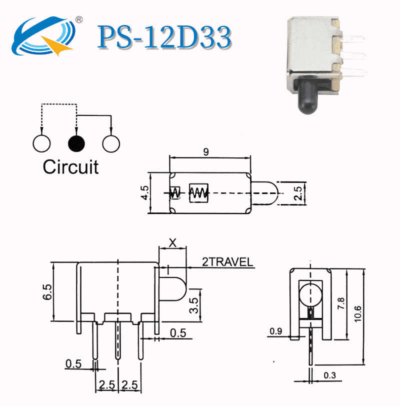產品簡介:型號:PS-12D33 種類:按鈕式 額定電壓:50(V) 額定電流:0.3(A) 接觸電阻:50(Ω) 絕緣電阻:100(MΩ) 加工定制:否 貨號:PS12D33