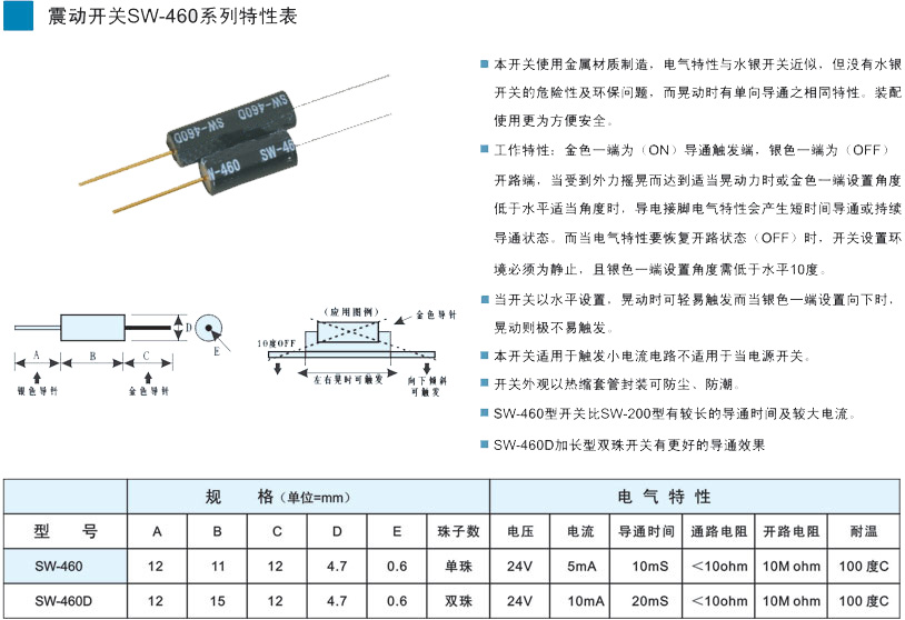 關鍵產品:滾珠開關,多方向滾珠開關,角度滾珠開關,鋼珠開關,珠子開關,晃動開關,手珠開關,滾珠開關SW-460
